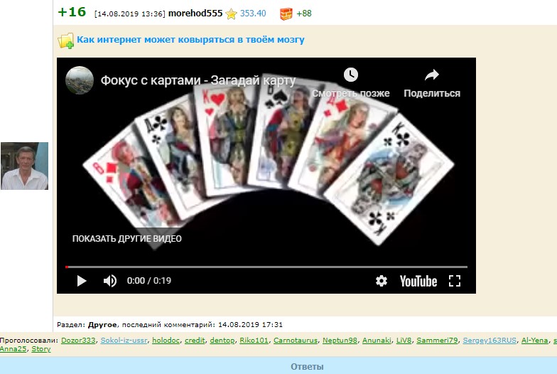 +21 [14.08.2019 13:36] morehod555 780.05 +238 Как интернет может ковыряться в твоём мозгу