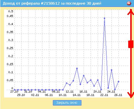 что бы можно было видеть точнее сколько принес реферал на конкретный день, а то бывает он в один день принес 1 бакс а потом по центу, на обычном графике будет казаться что он вообще ничего не приносит
