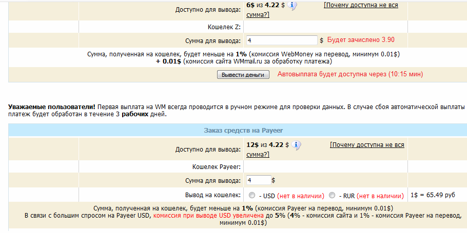 И ещё мне кажется будет здорово если будет отображатся баланс к примеру у меня есть 4$ рядом будет показано сколько поступин на кошелёк если я выведу учитывая % сайта и кошелька. Это больше актуально где вывод в рублях.