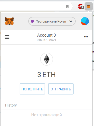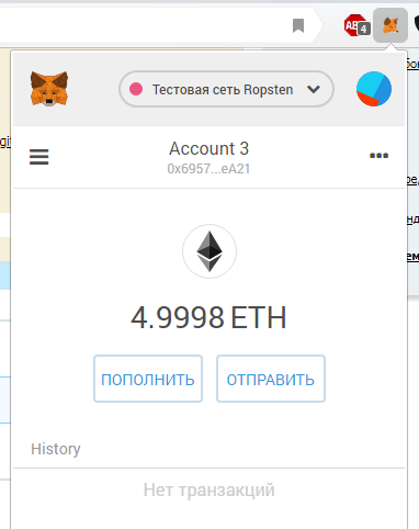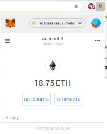 Запускаем MetaMask со своим кошельком.