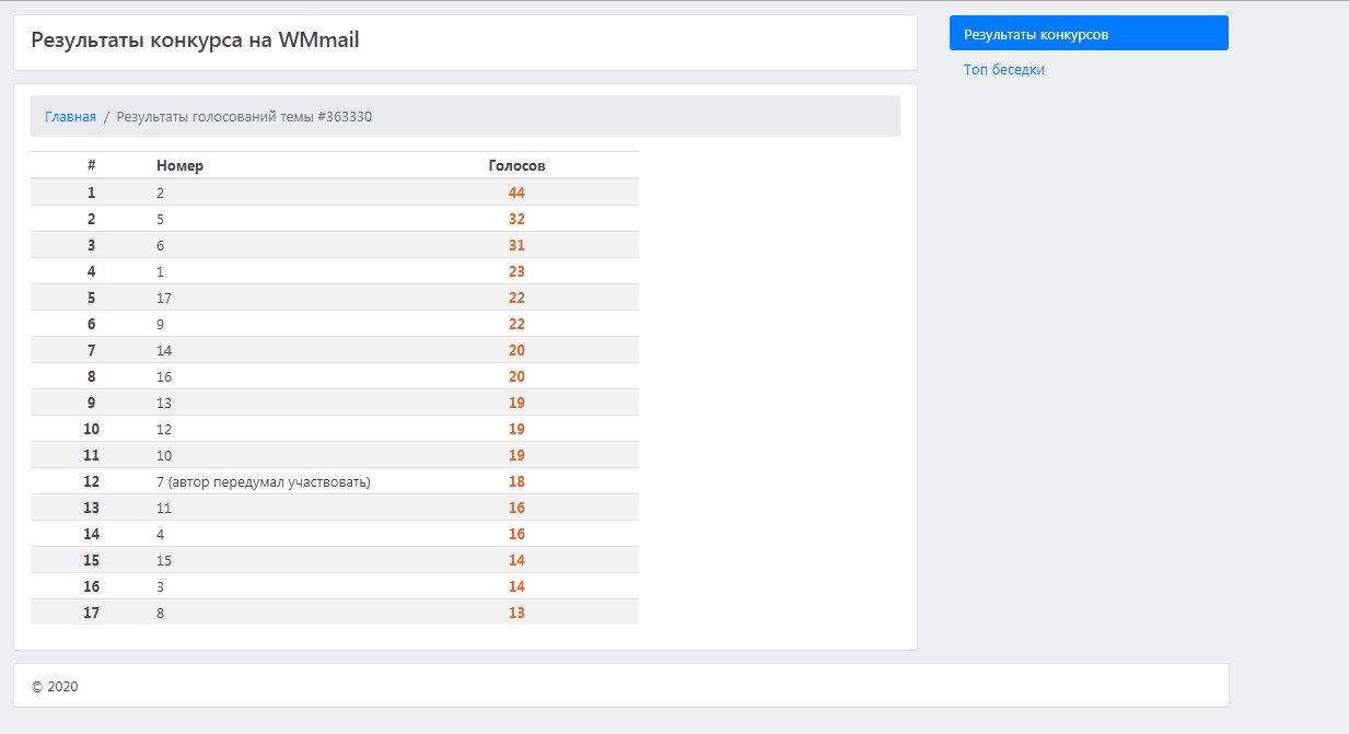 [открытый опрос] Раздел: WMmail.ru - Общение, проголосовало: 100, последний комментарий: 22.02.2020 23:59 Тема закрыта автором по причине финальное голосование завершено