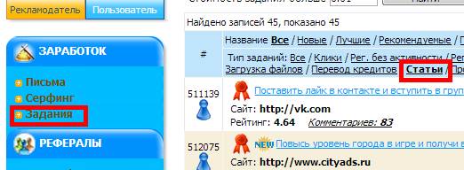 Заработок на написании статей, является одним из основных способов заработка для новичков, и проект Wmmail, предоставляет такую возможность. На этом почтовом сервисе, создан специальный раздел «Статьи», где выставлены задания, требования которых заключаются в передачи текста заказчику. Чтобы получить список таких заданий, вам потребуется зайти в нужный раздел и выбрать необходимый раздел, как на картинке:
