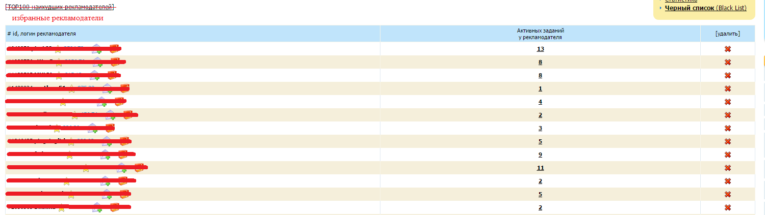 В списке ТОП-100 у меня более чем у 90% рекламодателей есть активные задания. Да и, опять же на мой взгляд, кнопочка эта ТОП-100 не особо приметная, считаю, что её можно оставить как есть.