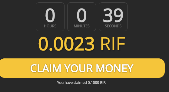 После регистрации каждые 20 минут нам капает 0.1 RIF (Подробная таблица: ) 1 RIF = 0.1$