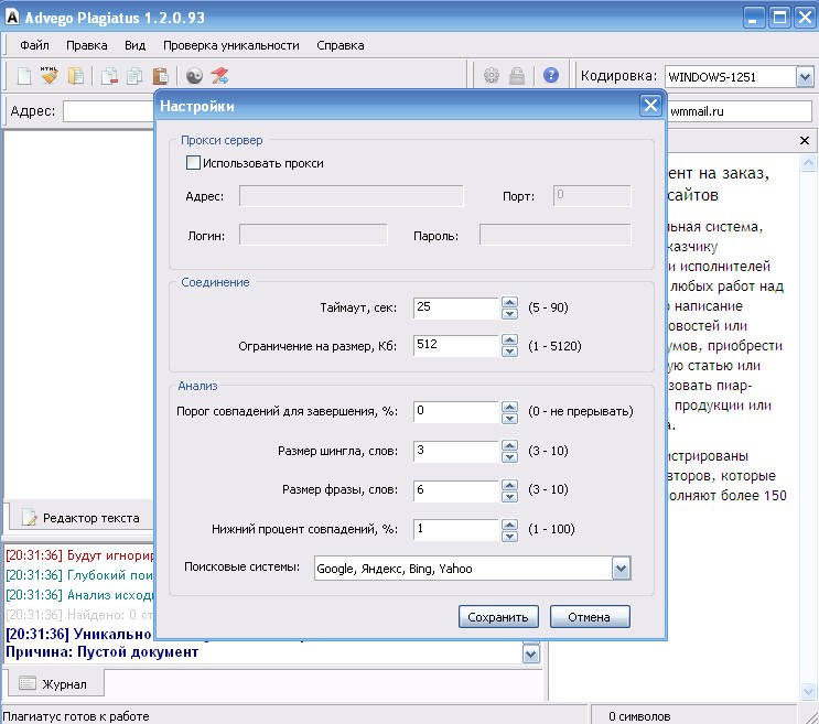 *Проверка уникальности организаторами будет производится по advego plagiatus с такими настройками: