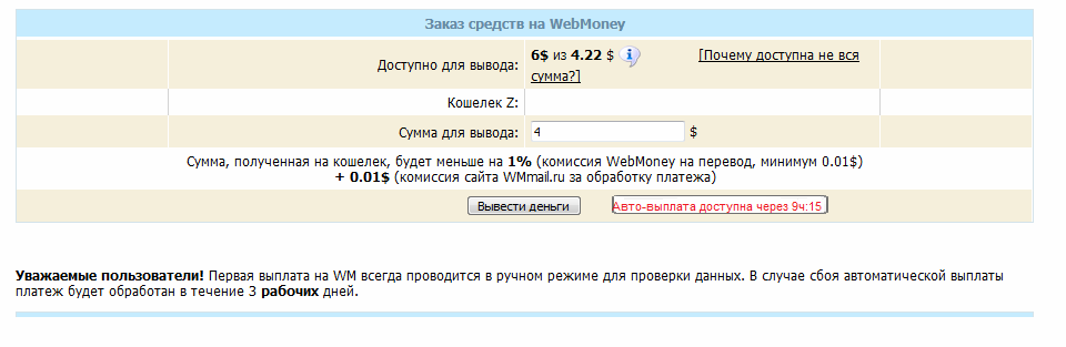 + 0.01$ (комиссия сайта WMmail.ru за обработку платежа